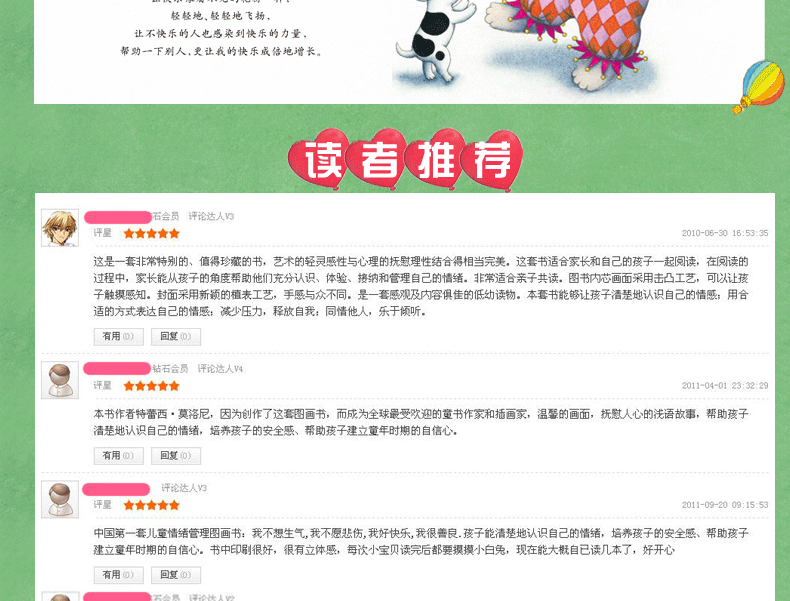 這是一套非常特別的、值得珍藏的書,藝術的輕靈感性與心理的撫慰理性結合得相當完美。這套書適合家長和自己的孩子一起閱讀,在閱讀的過程中,家長能從孩子的角度幫助他們充分認識、體驗、接納和管理自己的情緒。